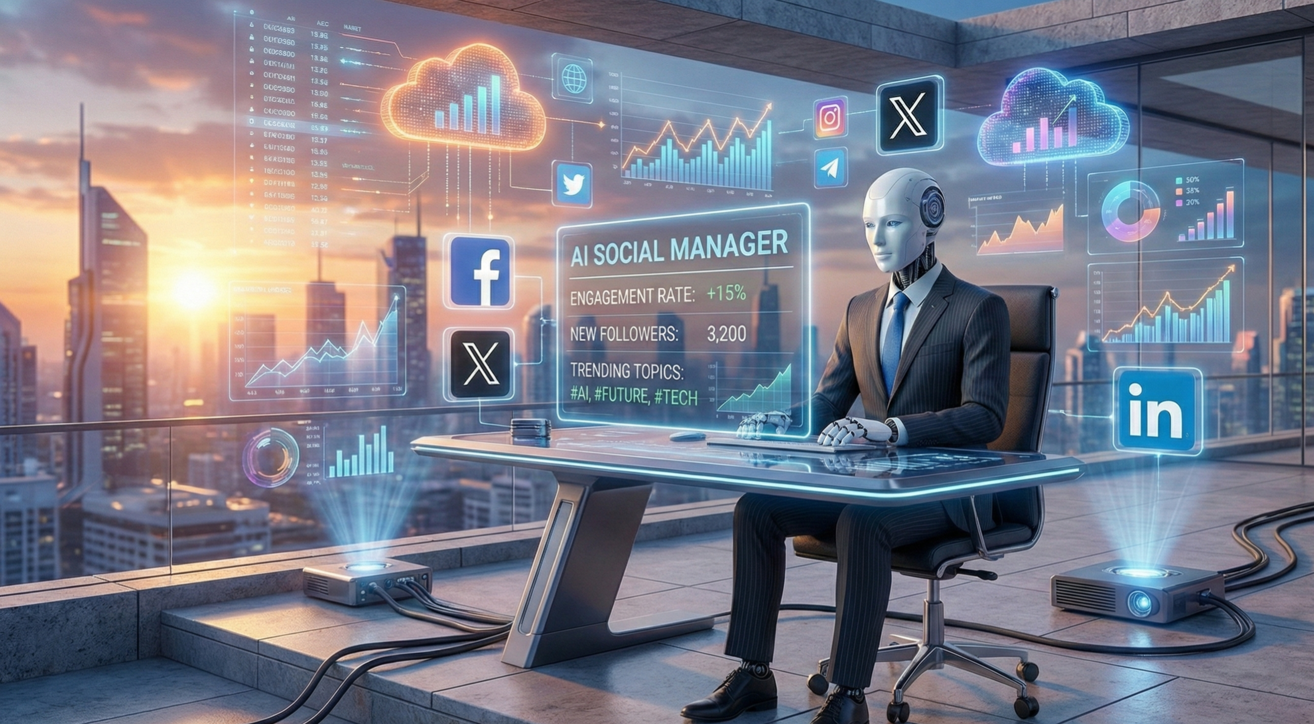 Cyfrowe środowisko komunikacyjne wymaga od marek ciągłej, niezwykle angażującej obecności w mediach społecznościowych, co często pochłania astronomiczne budżety reklamowe na zatrudnianie kolejnych grafików i copywriterów. Inteligentne, algorytmiczne wsparcie operacyjne rozwiązuje ten palący problem w sposób wręcz błyskawiczny. Platformy takie jak innowacyjny AI Social Media Manager to absolutny krzyk mody w nowożytnym marketingu B2B. Zautomatyzowany agent w ułamku sekundy analizuje trendy i potrafi całkowicie samodzielnie generować angażujące posty, dobierać przyciągające wzrok grafiki i tworzyć idealne hashtagi. System dba o perfekcyjne planowanie publikacji w czasie, z powodzeniem obsługując kluczowe kanały, w tym rozbudowane konta na Facebooku, Instagramie, LinkedIn oraz dynamicznym X. Taka innowacja gwarantuje stałą obecność w sieci bez potężnego działu kreatywnego, zapewniając personalizację na poziomie, który do tej pory był zarezerwowany wyłącznie dla gigantycznych korporacji.